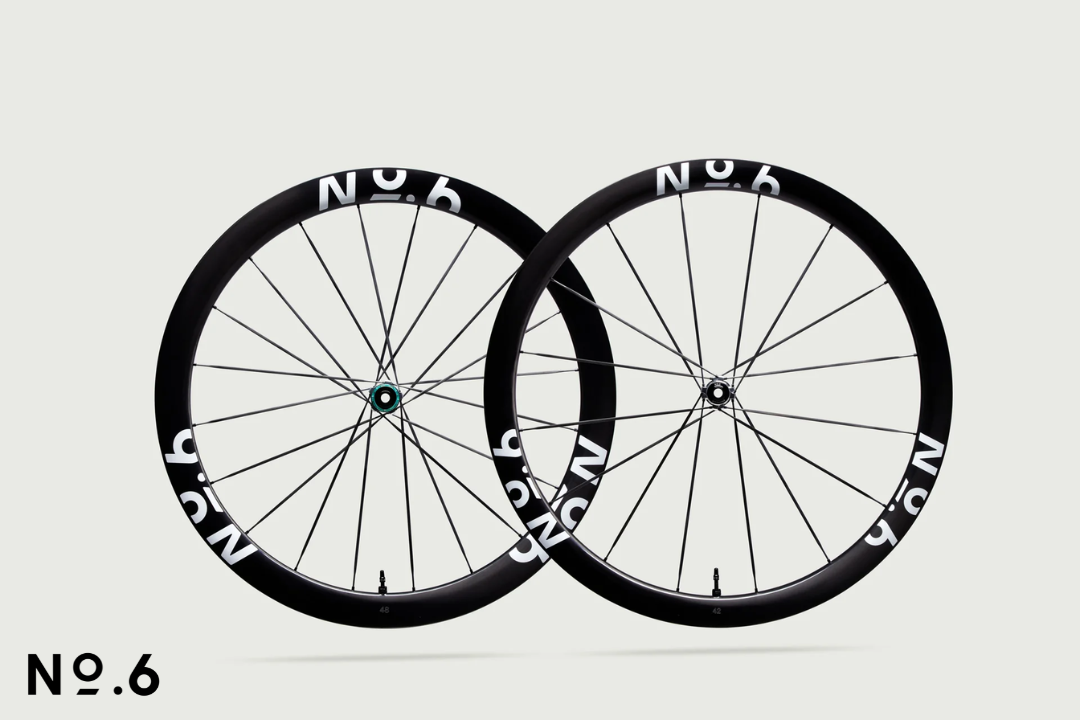 The No.6 42/48 Superlight All Round Wheelset is engineered as the ultimate all-round race system — balancing aerodynamic performance, low weight, and control across varied terrain and changing conditions.