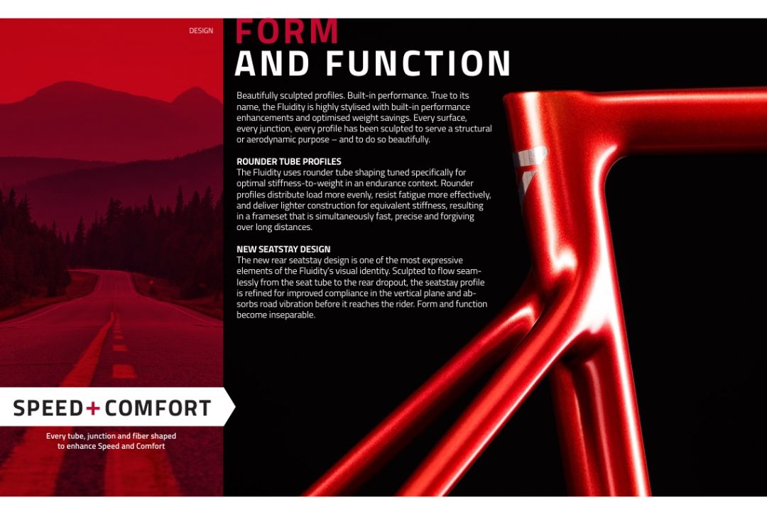 - Beautifully sculpted profiles. Built-in performance. True to its name, the Fluidity is highly stylised with built-in performance enhancements and optimised weight savings. Every surface, every junction, every profile has been sculpted to serve a structural or aerodynamic purpose – and to do so beautifully.