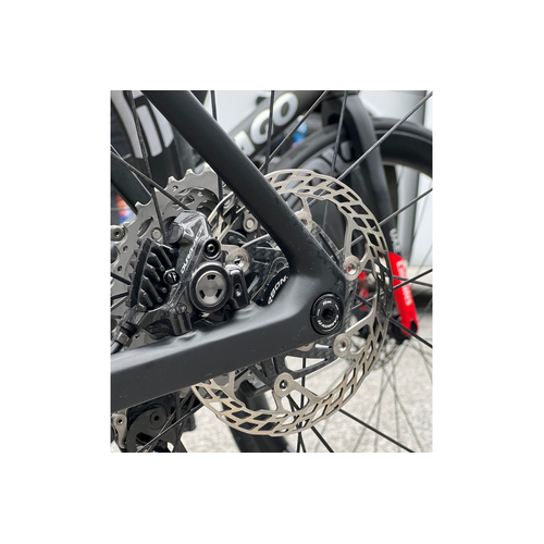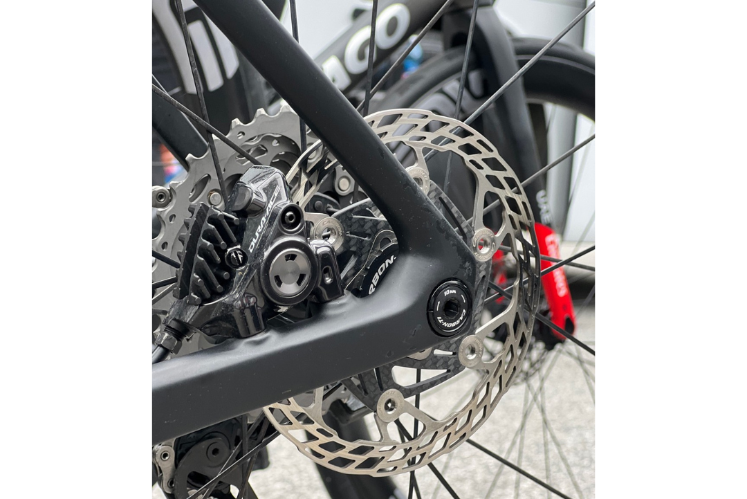 The redesigned 1.8mm steel braking surface improves braking performance while promoting more even pad wear and enhanced heat dissipation during sustained braking. CNC-machined rounded rotor edges increase safety and ensure compliance with UCI regulations.