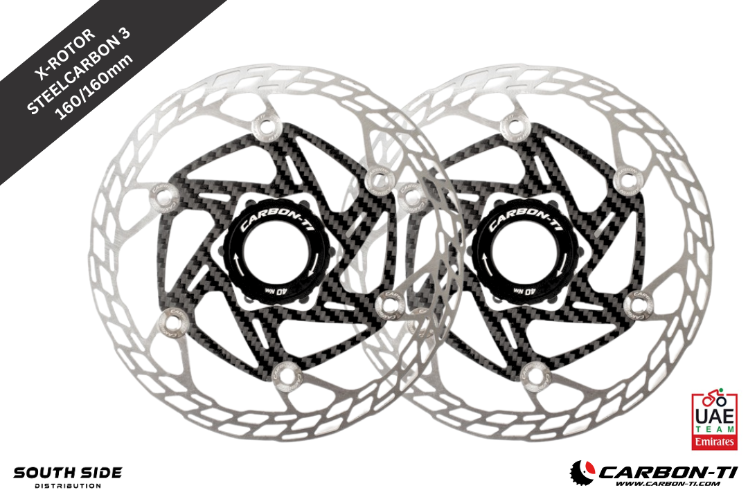 The Carbon-Ti X-Rotor SteelCarbon 3 disc rotor set represents the latest evolution of the acclaimed SteelCarbon rotor platform, trusted by road and MTB riders since its original release in 2015. This 160mm / 160mm rotor combination provides an ideal braking configuration for modern road and gravel builds, balancing powerful front braking with a lighter rear setup.
